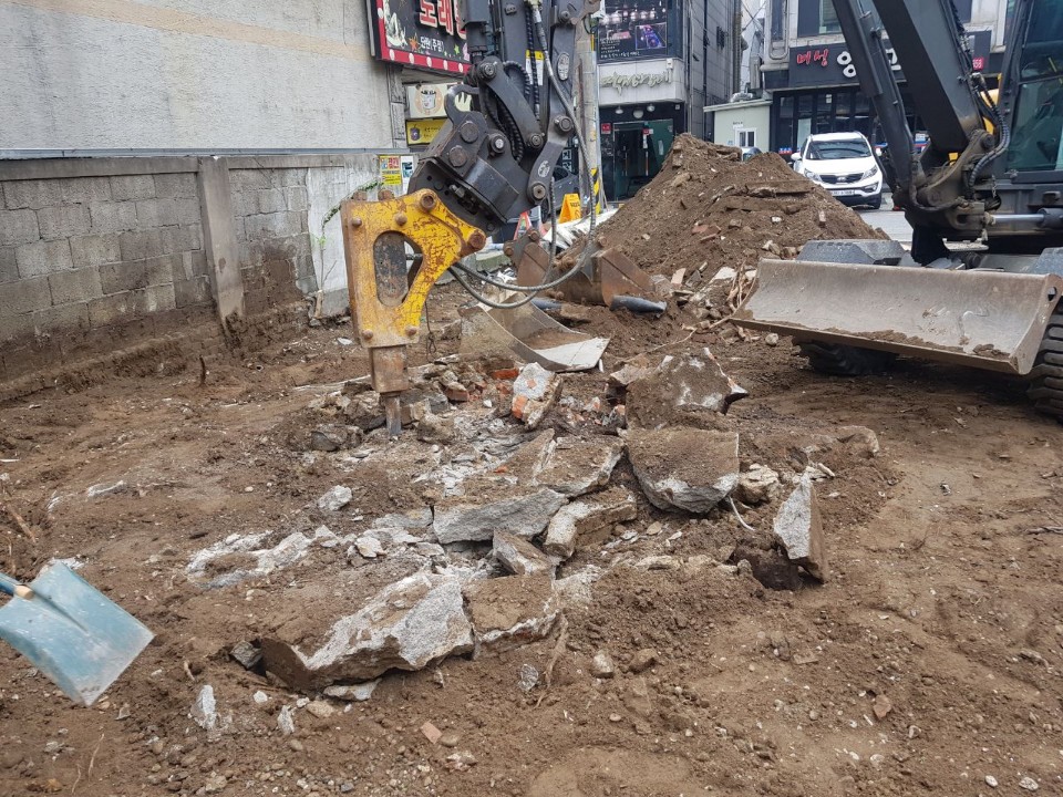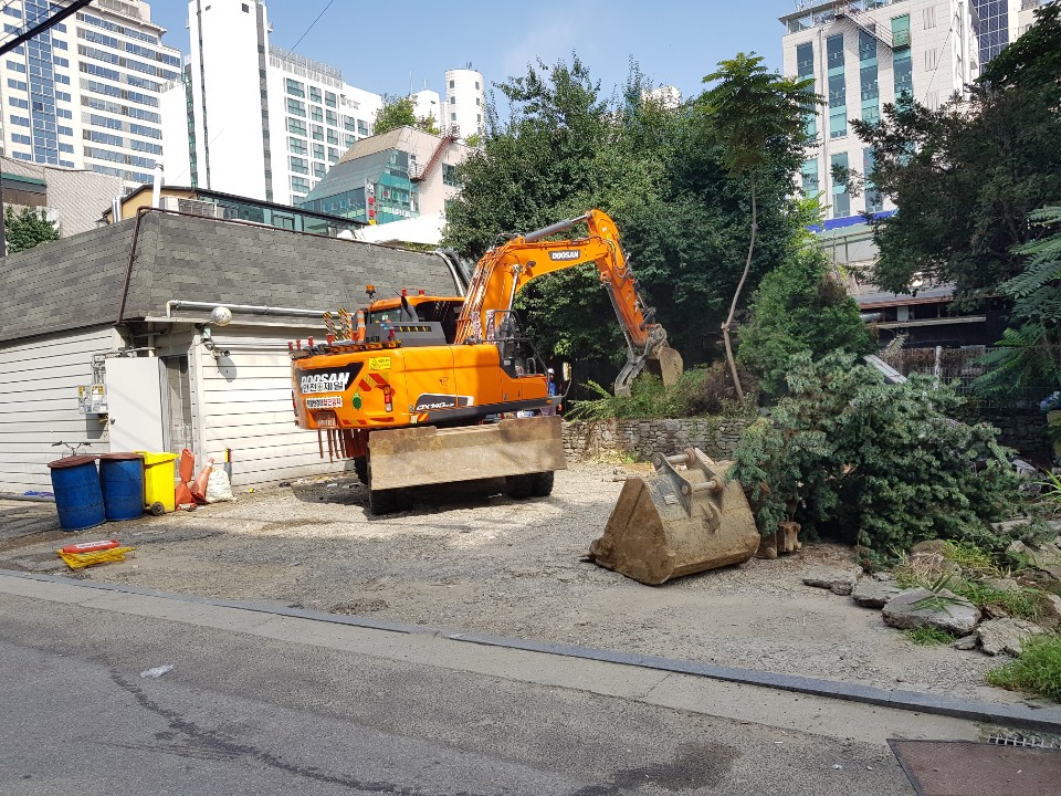 흙도 걷어 내고 땅에 레벨도 맞추기 위해 장비가 힘을 쓰고 있습니다.